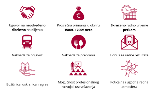 Cijenimo visoku motiviranost za rad u dinamičnom, zahtjevnom i poticajnom okruženju – ako voliš ritam koji traži fokus, ali donosi osjećaj uspjeha na kraju dana, kod nas ćeš se pronaći.