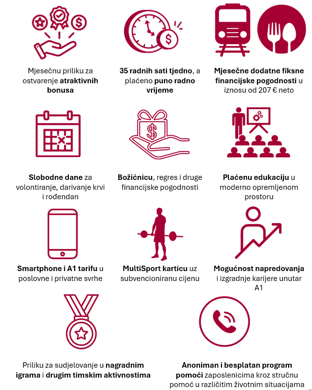 Ako voliš razgovarati putem telefona te želiš raditi u velikoj internacionalnoj tvrtki i konstantno učiti i napredovati, naš klijent, A1 Hrvatska d.o.o., ima savršeno mjesto za tebe:
