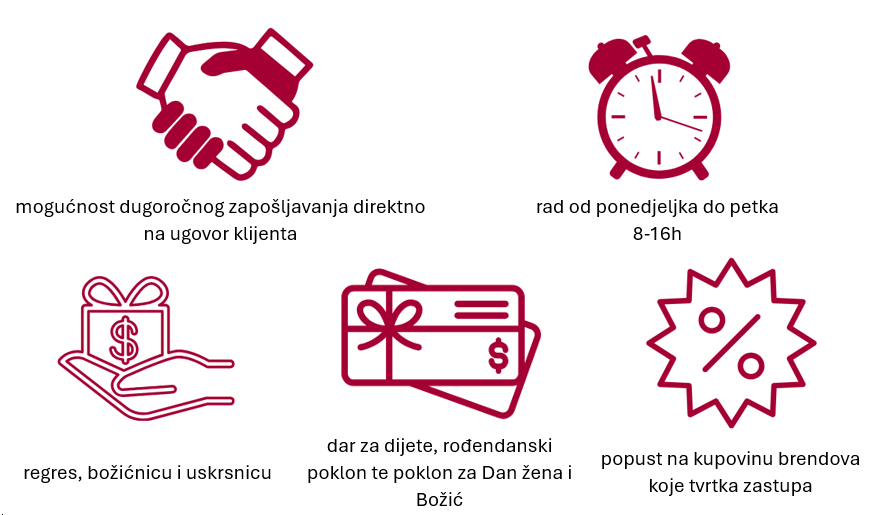 Na ovom radnom mjestu radili biste na web shopovima za sva tri brenda koje tvrtka zastupa. Bili biste odgovorni za usluge web shopa te biste radili u sustavu naplate, pripremi narudžbe, pakiranja narudžbe te predaje narudžbe dostavnoj službi. Osim što biste preuzimali robu te brinuli o zalihama, odgovarali biste na reklamacije i upite kupaca putem e-maila i telefona te rješavali povrat proizvoda. Svakako na kraju mjeseca radili biste analize i izvještaje o rezultatima prodaje te biste bili u stalnoj suradnji s odjelom marketinga.