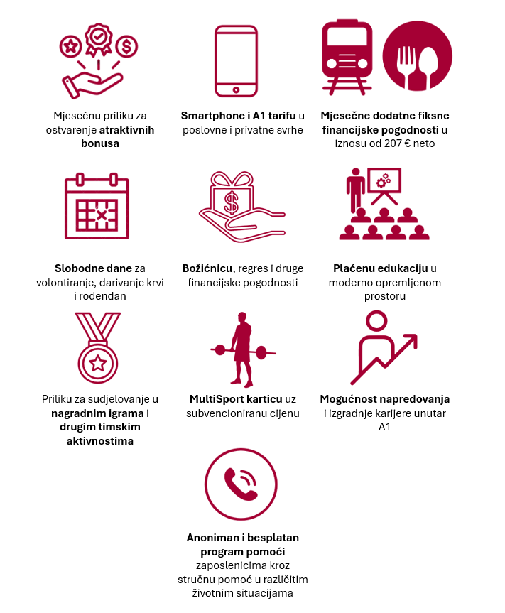 Radit ćeš u moderno opremljenoj A1 poslovnici i biti u direktnom kontaktu s korisnicima: